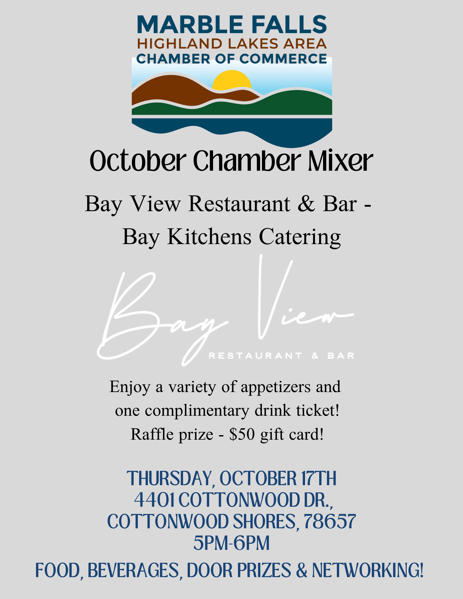 Join us at Bay View Restaurant for the October Mixer! Details coming soon!