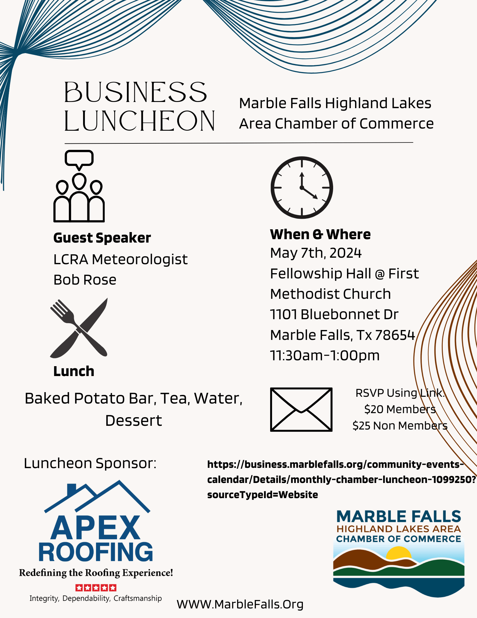 Guest Speaker: LCRA Meteorologist: Bob Rose Members $20 Non- Members $25